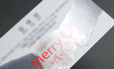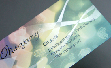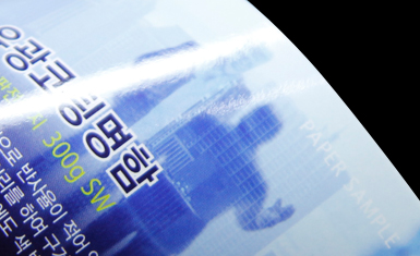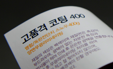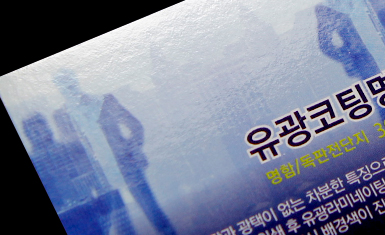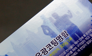 스노우지 300g의 두꺼운 용지에 인쇄 후 양면 무광택 코팅을 처리하고,원하는 부분에 유광라미네이팅 처리를하여 유광코팅된 부분이 돋보입니다. 또한, 코팅가공으로 구겨짐이 적고,  잘찢어지지 않는 특징을 갖고있습니다.