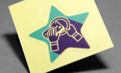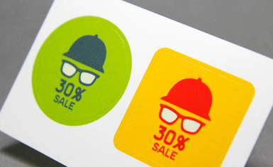 발색이 좋은 아트지에 인쇄하여 색상표현이 선명하고, 가격도 저렴해 홍보용으로 사랑받습니다. 잘 찢어지며 스티커 표면에 메모가 가능합니다.